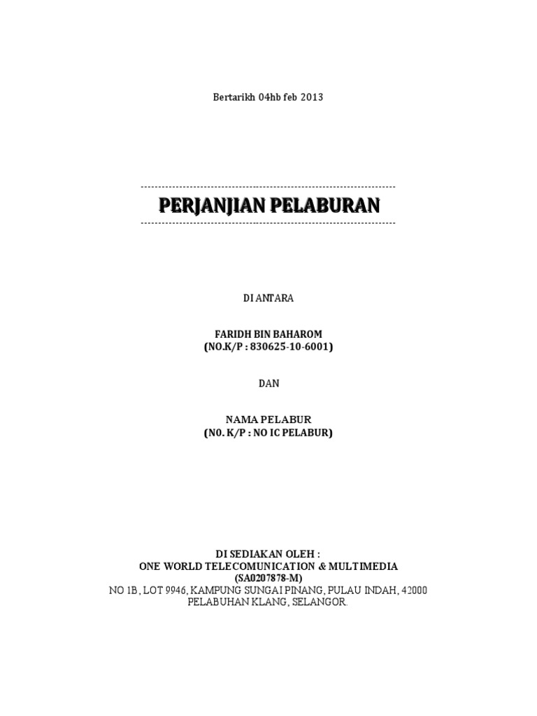 Kali ini akan dijelaskan pengertian surat perjanjian faktor apa saja yang harus ada dan bagaimana cara membuat surat perjanjian. Surat perjanjian pembinaan website download 14. Perjanjian ini adalah perjanjian diantara pelabur perniagaan dan syarikat os.