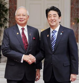 Najib disambut oleh Perdana Menteri Jepun Shinzo Abe sewaktu tiba untuk menghadiri Sidang Kemuncak Peringatan 40 Tahun Penubuhan Hubungan Dialog Asean-Jepun di Geihinkan State Guest House Aksaka Palace Tokyo Jepun. Jumlah perdagangan meningkat 14 kepada RM13745 bilion daripada RM13556 bilion pada tahun 2013. Menjelang tahun 1980-an jumlah itu telah meningkat kepada hampir 300 buah firma dan jumlah pelaburan Jepun Article.